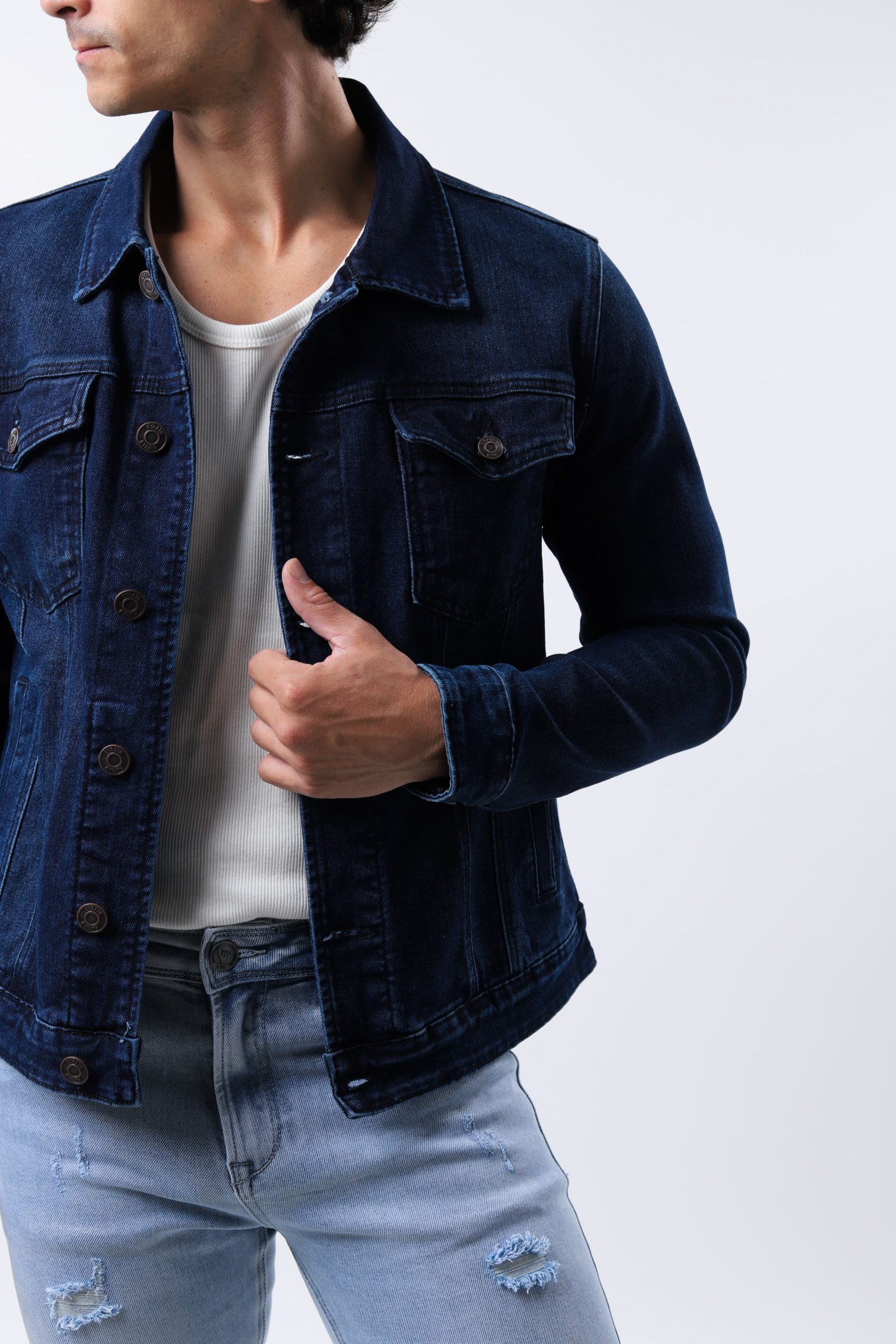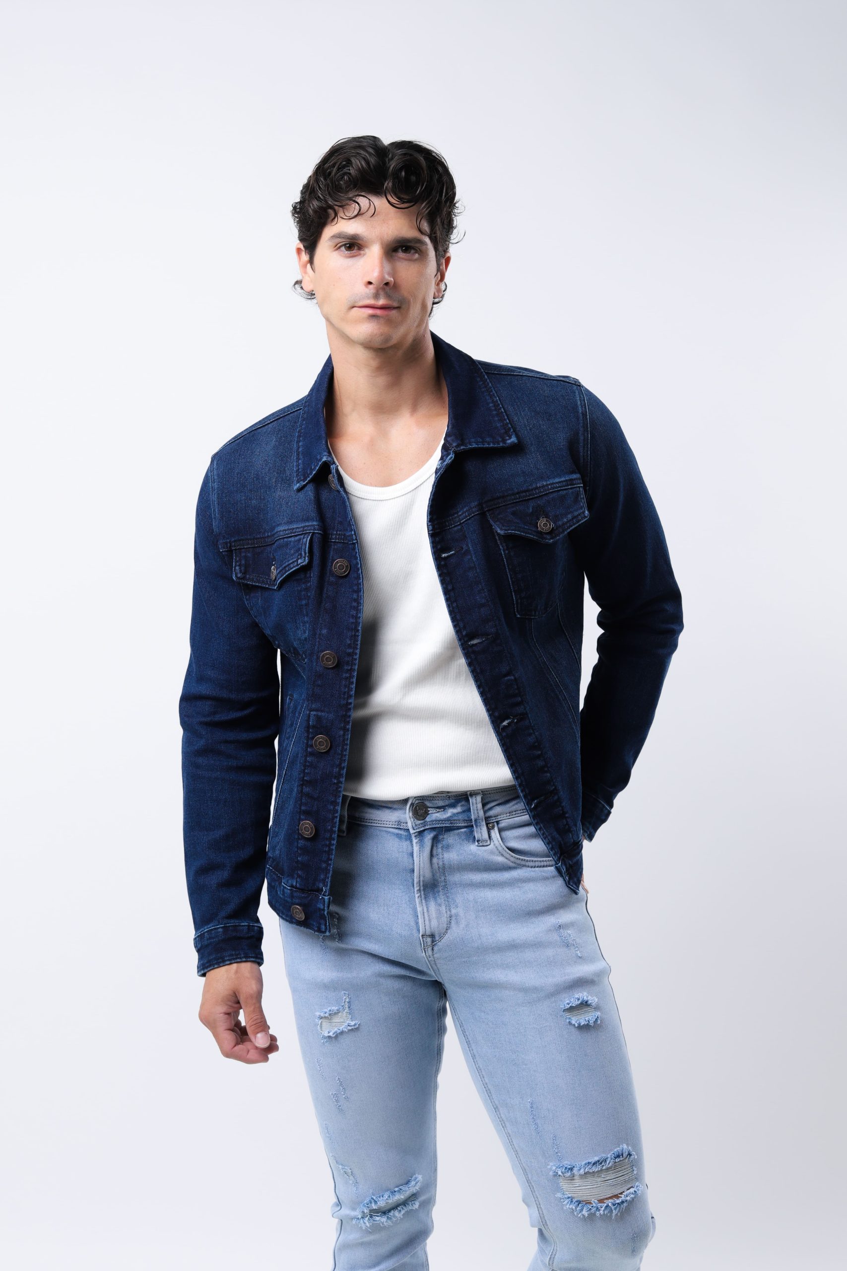 Collection denim chamarra de mezclilla atemporal y versátil, hecha de tejido denim, que se caracteriza por su durabilidad y estilo casual