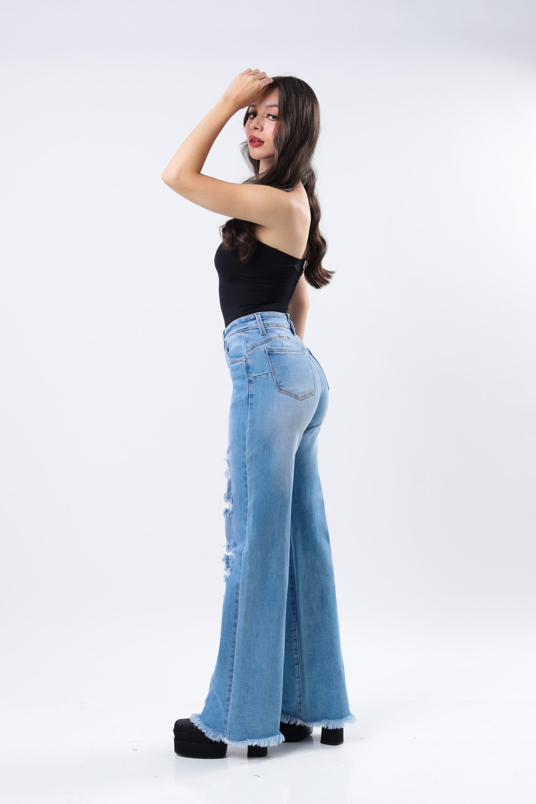 PANTALON DENIM KYRATH WIDE LEG MEZCLILLA AZUL CLARO 4073